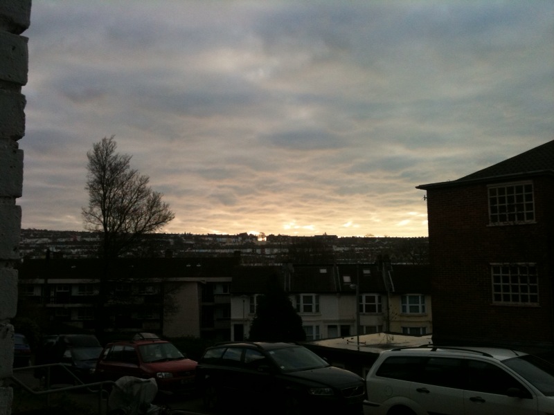 It’s funny how the first sight of blue sky in a week can lift even the most dreary parts of this city. In moving from being on top of a hill into the valley we’ve lost our big picture landscape of the city, we no long look down on it from afar but we now live in it. Amongst the dirty streets and squawking seagulls we have made our dwelling. Two weeks of relentless rain do not make this city attractive, fog has added some atmosphere but down here in the valley there is feeling of being surrounded by unchanging grey. We can no longer see The Downs in the distance, but this being Brighton we do have views, another reason I love this place. We can look across to the coloured houses of Muesli mountain and see the sun glinting off the windows creating shimmering beauty outside our flat. On the top of the hill, nestled inbetween rows of houses sits a winter tree, stark against the skyline, lit up and highlighted by it’s uniqueness. I love gazing on this tree, so out of place amidst the houses, giving a break in the skyline and allowing the sun to peak over the horizon at the city. It’s Sunday morning and there is hope in the air.
