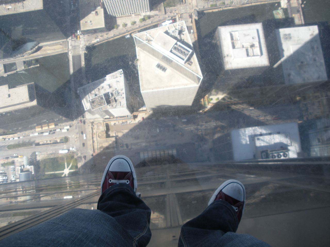 Don’t look down… At the top of the Willis Seers Tower on the skydeck with Meredith.