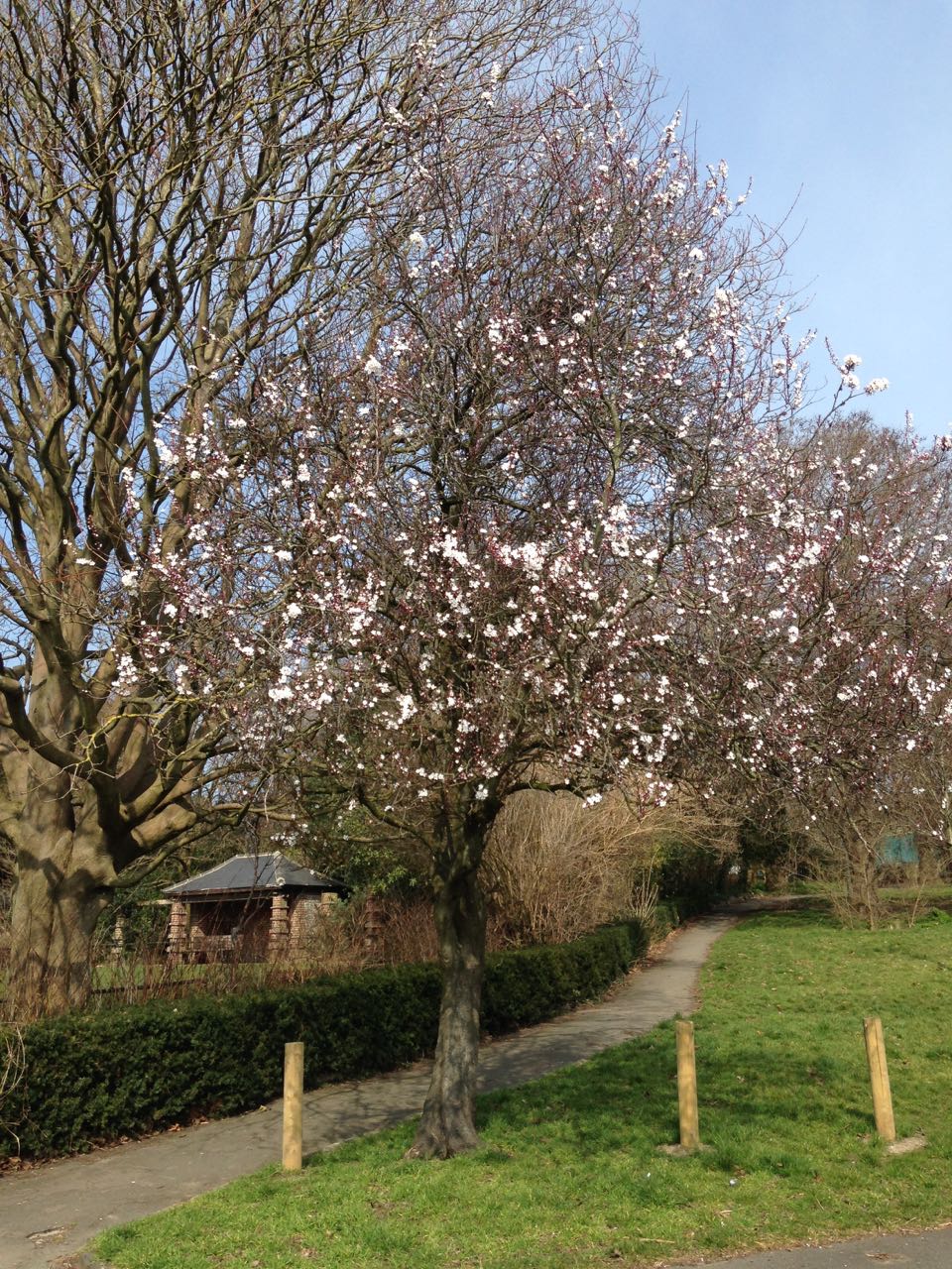 Another walk in the sunshine with the invalids. Sitting in the park eating lunch and chatting to son1, glad of a moment of interaction beyond wailing for the laptop. Blossoms out on the trees and the lovely Alice for company again this afternoon.