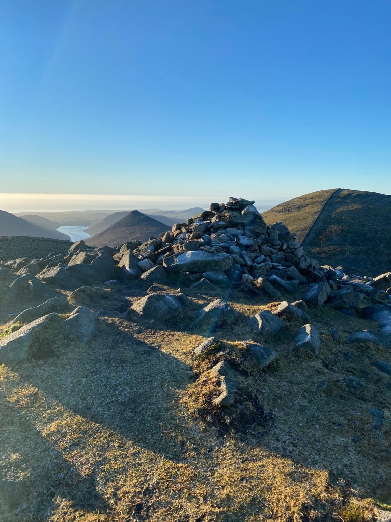 Slieve Lamagan was climbed in honour of my birthday. Husbandface was super kind in indulging my desire to climb it (another steep, lack of path scramble) and then extend our walk down the other side into a valley at the bottom and then round for a swim in the Blue Lough. So pretty, so exhilarating. The climb was the clearest this month and the views were breathtaking.