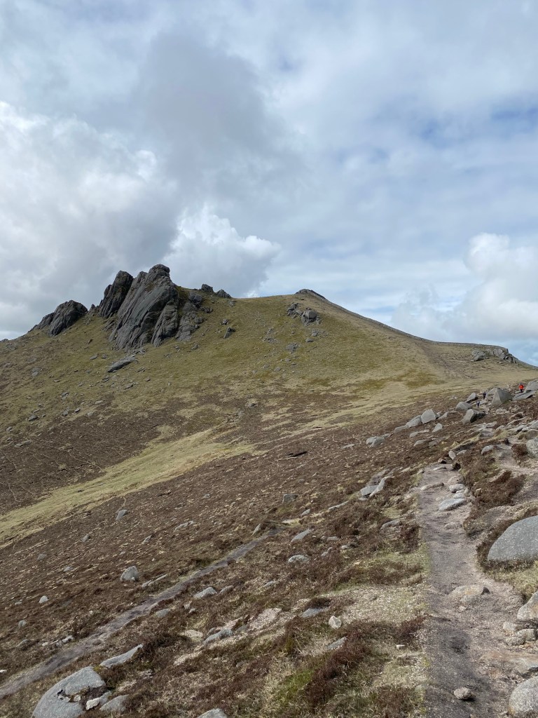 After a couple of lower level walks on my days off Slieve Bearnagh was in my sights. It’s craggy top sticks out sharply on the sky line from our windows and kept calling to me. I took the husbandface this time, enjoying walking with him and having someone to keep me confident as I stared at the steep incline in front of me with no discernible path after we’d made it to the top of Hare’s Gap. I was glad of his company on the hairy descent as well.