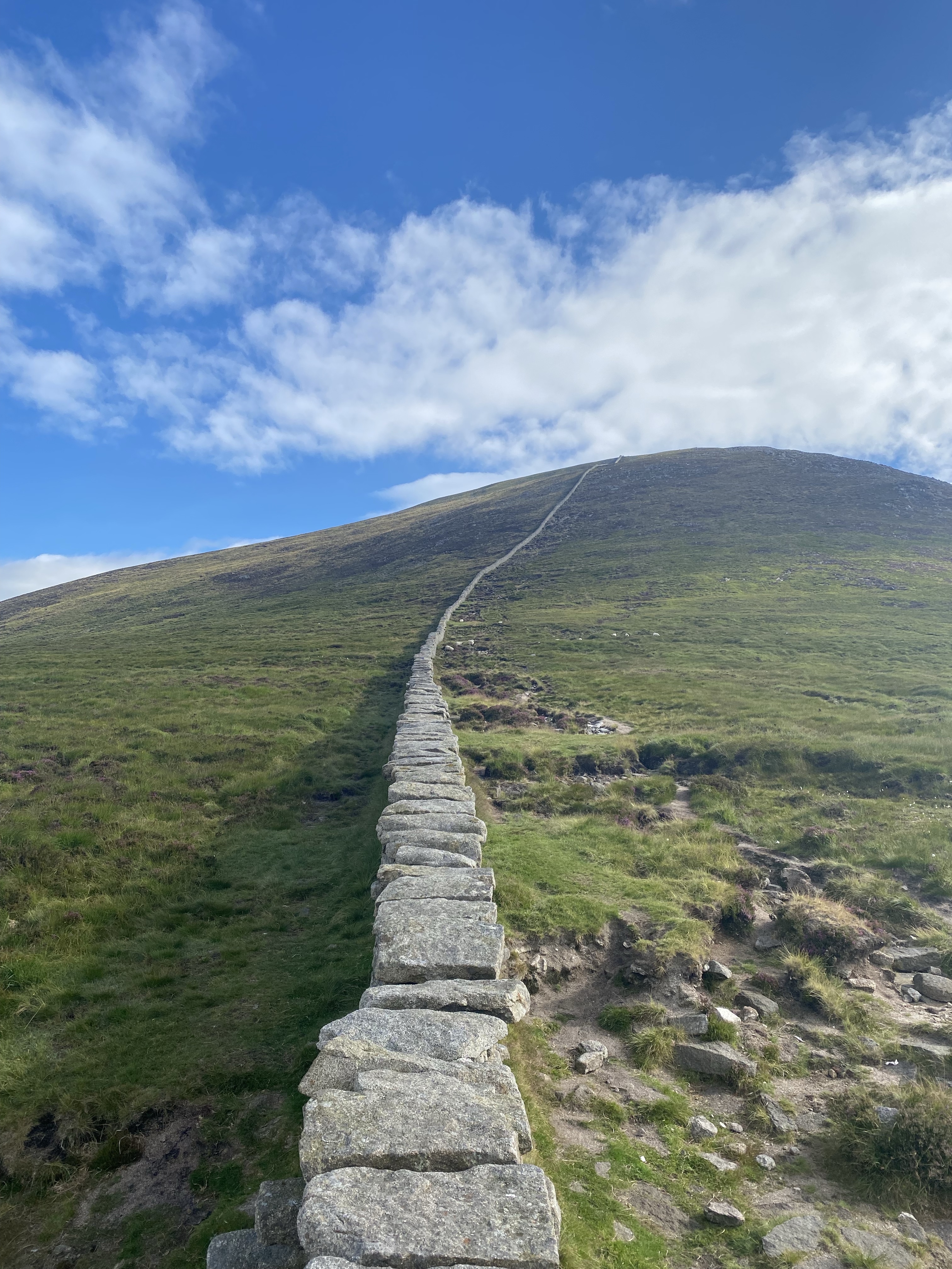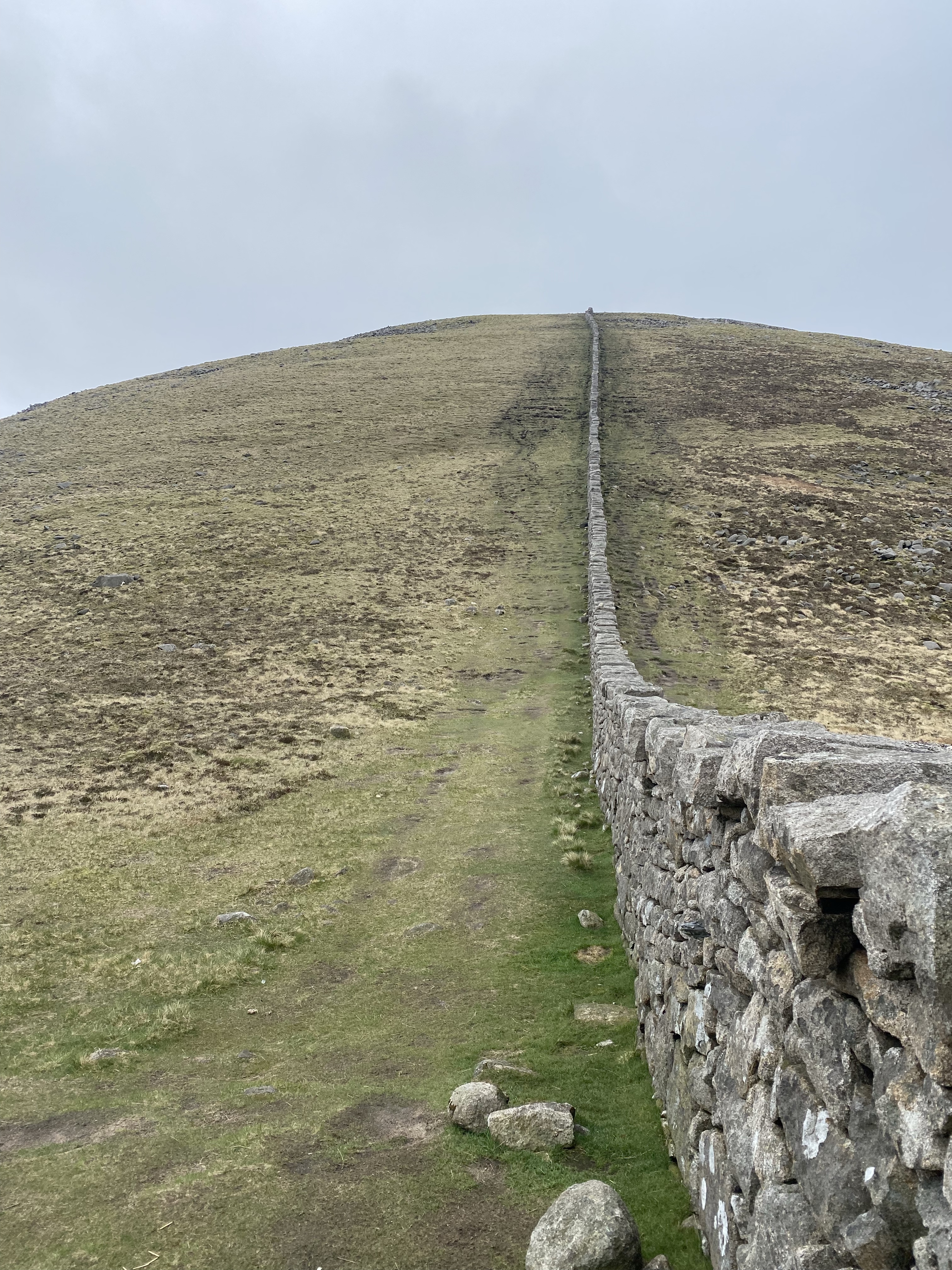 I went up Slieve Commedagh on my own, determined to climb it despite the large amount of cloud on top. The Mourne Wall is perfect for being able to go up some of the mountains with confidence in clouds, I love walking by its steady presence, glad of the clarity as the fog descends. I would love to do this one again on a clear day.
